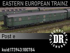 Post-e series mail van owned by East German railways DR, former car No 4503 Post4u manufactured in 1937 by Waggonfabrik Gebruder Credé Kassel for German Railways, inherited by DR after 1945 and remaining in service until early 1990s. Model presents mid 1970s state and lettering. 3d by kilanziom, photos by cameron, textures by kilanziom, script by Qcyk85. Model suitable for TRS2004+