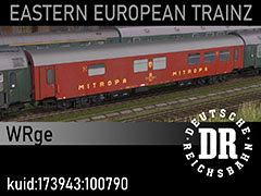 WRge series restaurant coach owned by East German Railways DR, manufactured by RAW Halberstadt in 1975, late 1970s state and paintscheme. 3d kilanziom, photos kilanziom, textures kilanziom, script Qcyk85. Model suitable for TRS2006+