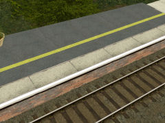 A UK Tarmac Platform spline with edging stones, a yellow line and bricked sides. 1.3m high and 2.5m wide. They are also Low Poly.