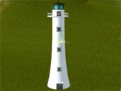 A lighthouse with night mode and animated rotating light beam visible at night only.