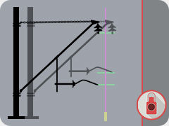 Mast and hanger for supporting a pair of wires where one is a standard wire and the other is a high wire.
