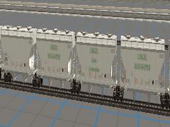Many thanks to DAVESNOW (DES) for allowing us broad discretion in using his content. This set uses a cloned DES hopper and cloned DES position adjusted bogey(s). This is Car 1 of the 5 the car articulated covered hopper set using his TILX 2-Bay Covered Hopper.