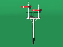Midland railway lower quadrant semaphore signal based on a design at Bath Green Park. Mesh and textures by chrisaw using original files produced by Bloodnok, my thanks to him for agreeing to this release, his licence applies. Use targets (L-R) straight, right 1
