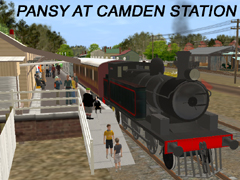In the illustration 'Pansy' the locomotive is a NSWGR 20 Class tank. The line from Campbelltown to Camden was opened in 1992 and closed in 1962. In its begining it was operated as a tramway. It was built to service agriculture in the Camden area and also served the Coal mining industry in the area with a coal loader at Narellan. There was a very steep gradient at Kenny Hill, 1:20 down from Campbelltown and 1:19 up from Camden. This was the steepest gradient on a railway in NSW. Like its neighbourING line at Kurrajong, the train on the line was called 'Pansy'.