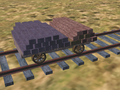 It is a track object. Small platform car for works on the railway tracks, for 1435mm gauge, loaded with sleepers. Version 3.