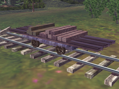 It is a track object. Small platform car for works on the railway tracks, for 914mm or 3ft gauge, loaded with rails and sleepers. Version 4.