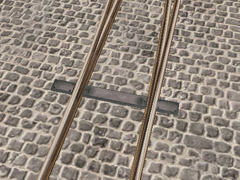 Metric gauge railway switches, embedded in the ground for tracks on streets (tramways) or industrial areas, classic version with internal electric motor, B, 20cm wide.
