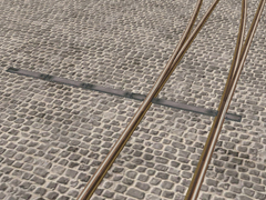 1435mm gauge railway switches, embedded in the ground for tracks on streets (tramways) or industrial areas, manual version with three metal extension modules (3M), without a track switch lever (-), 20cm wide.