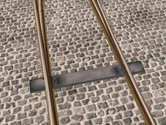1668mm gauge railway switches, embedded in the ground for tracks on streets (tramways) or industrial areas, classic version with internal electric motor, B, 40cm wide.