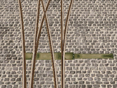 Metric gauge railway switches, embedded in the ground for tracks on streets (tramways) or industrial areas, manual version with a metal extension module (1M), without a track switch lever (-), for crossing with rails in several consecutive switches. It is 2 cm deeper into the ground to clearly see the intersection with other rails.