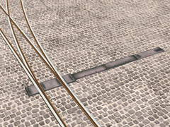 Railway switch for 610 mm or 2 ft. track, embedded in the ground for tracks over streets (trams) or industrial areas, classic version with three attached metal modules for manual track change with removable lever. 3M version.
