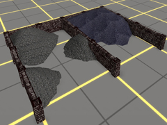 Yard or coal storage area, with two storage areas and four coal piles, size 20m x 15m. Version A. Open storage yard, without gates, limited only by stone retaining walls.
