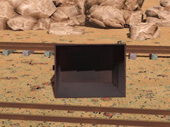 Rolling material and various parts for 18-inch (45,72cm) track abandoned and unused, as scrap, to set and decorate mines and industries. Part of the ore car wagon without wheels, only the overturned bucket, abandoned, as scrap. Version 7