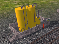 Group 2 fuel tanks, static non-functional. Version 05A, Yellow 2. With concrete container for fuel spills. Capacity or virtual volume of tanks: 2 vertical tanks of 7.64 m3 x 2 = 15.28 m3 or 4036 US gal