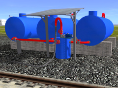 Group of 3 horizontal fuel tanks, static non-functional. Version 07, Blue 2. Without anti-spill concrete container. Capacity or virtual volume of tanks: 3 horizontal tanks of 14.78 m3 x 3 = 44.35 m3 or 11713 US gal