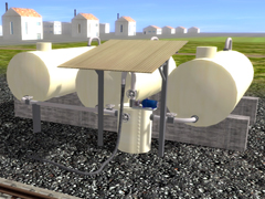 Group of 3 horizontal fuel tanks, static non-functional. Version 10, White. Without anti-spill concrete container. Capacity or virtual volume of tanks: 3 horizontal tanks of 14.78 m3 x 3 = 44.35 m3 or 11713 US gal