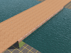 Port dock or quay to one side, with reddish cobblestones floor, 60m wide and 20m high, the start and finish is 95m long with cobblestones. Version 1B. It is a SPLINE of 3 parts, beginning, middle zone or repetition and end.