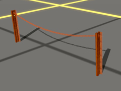 Paso a nivel permanentemente cerrado con cadena de 4m, con 2 apoyos en carriles verticales, para cualquier ancho de via. Permanently closed level crossing with 4m chain, with 2 supports on vertical rails, for any track gauge.
