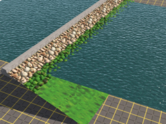 Breakwater with rock wave breaker and stone wall, for the protection of port areas. Version 7. It is a SPLINE of 3 parts, beginning, middle zone or repetition and end.