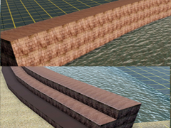 Breakwater with only three-part staggered stone walls on one side and a vertical wall on the other side, (without rocks) for the protection of port areas. Wall with a height of 18m and a base of 24m wide. Version 1i. It is a 3-part SPLINE, beginning, middle or repetition zone and end. It could be used as a port dock or a dam retaining wall.