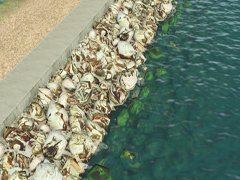 Breakwater with rock wave breakers on one side and two-part stepped stone wall on the other side, for the protection of port areas. Side with rocks with a height of 20m and wall side with a height of 22m. Version 5b. It is a SPLINE of 3 parts, simple beginning, middle zone (4 lods) or repetition and simple end.