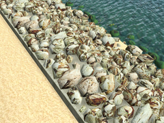 Breakwater with rock wave breakers on one side and two-part stepped stone wall on the other side, for the protection of port areas. Side with rocks with a height of 20m and side of the wall with the same height of the rock floor 20m and with rocks on the upper floor of the wall. Version 5d. It is a SPLINE of 3 parts, simple beginning, middle zone (4 lods) or repetition and simple end.