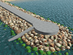 Breakwater with rock wave breakers on both sides with a concrete access in the center 10m wide and 1.8m high above the level of the rocks, for the protection of port areas. The sides with rocks have a height of 20m above the base of the terrain. Version 7e1. It is a 3-part SPLINE, beginning, middle zone (4 lods) or repetition and rounded end with a small access dock to the sea (4 lods), it is a useful area for the placement of a maritime lighthouse.