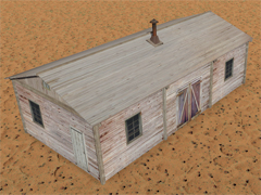 Wooden house, old west style, with chimney and smoke, no night mode. Dimensions: 6m x 12m. Version 5I