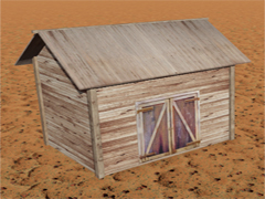 Small Wooden shed, old west style, no night mode. Dimensions: 3m x 4m. Version 6N