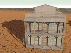 Two-story, old-west-style wooden house with stairway and balcony, with chimney and smoke, it has no night mode. Dimensions: 6m x 6m. Version 8H