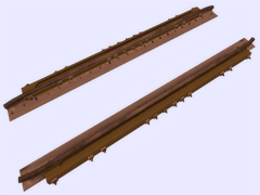 It is a track object: To make railway crossings (diamond junction or diamond crossing) at the same level. Length 4m, rail gauge 1435mm, with 12 bolts with union screws from the rail to the check rail (model C) every 20-40cm alternate. Version or finish 2. For straight track and level with the ground. Rail crossing designed for UIC rail 60kg per meter, approximately 121 pounds per yard, not suitable for light rail. Rail 16 cm high. New version with the addition of the ''follow-gradient 1'' tag, to adapt to the inclinations of the railway track.