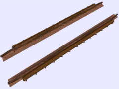 It is a track object: To make railway crossings (diamond junction or diamond crossing) at the same level. Length 5m, rail gauge 1435mm, with 13 bolts with union screws from the rail to the check rail (model B) every 40cm. Version or finish 2. For straight track and level with the ground. Rail crossing designed for UIC rail 60kg per meter, approximately 121 pounds per yard, not suitable for light rail. Rail 16 cm high. New version with the addition of the ''follow-gradient 1'' tag, to adapt to the inclinations of the railway track.