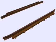 It is a track object: To make railway crossings (diamond junction or diamond crossing) at the same level. Length 2.6m, rail gauge 1435mm, with 7 bolts with union screws from the rail to the check rail (model B) every 40cm. Version or finish 2. For straight track and level with the ground. No spikes on the checkrails. Rail crossing designed for rail 30kg per meter, approximately 60.5 pounds per yard, suitable for medium rail. Rail 12 cm high. New version with the addition of the ''follow-gradient 1'' tag, to adapt to the inclinations of the railway track.