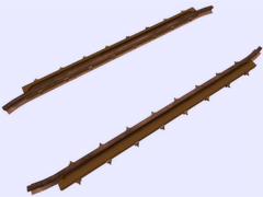 It is a track object: To make railway crossings (diamond junction or diamond crossing) at the same level. Length 3.2m, rail gauge 1435mm, with 8 bolts with union screws from the rail to the check rail (model B) every 40cm. Version or finish 2. For straight track and level with the ground. No spikes on the checkrails. Rail crossing designed for rail 30kg per meter, approximately 60.5 pounds per yard, suitable for medium rail. Rail 12 cm high. New version with the addition of the ''follow-gradient 1'' tag, to adapt to the inclinations of the railway track.