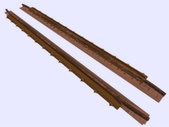 It is a track object: To make railway crossings (diamond junction or diamond crossing) at the same level. Length 5m, rail gauge 1067mm, with 13 bolts with union screws from the rail to the check rail (model B) every 40cm. Version or finish 2. For straight track and level with the ground. Rail crossing designed for UIC rail 60kg per meter, approximately 121 pounds per yard, not suitable for light rail. Rail 16 cm high. New version with the addition of the ''follow-gradient 1'' tag, to adapt to the inclinations of the railway track.