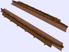 It is a track object: To make railway crossings (diamond junction or diamond crossing) at the same level. Length 2.4m, rail gauge 1067mm, with 6 bolts with union screws from the rail to the check rail (model B) every 40cm. Version or finish 2. For straight track and level with the ground. With spikes on the checkrails. Rail crossing designed for rail 30kg per meter, approximately 60.5 pounds per yard, suitable for medium rail. Rail 12 cm high. New version with the addition of the ''follow-gradient 1'' tag, to adapt to the inclinations of the railway track.