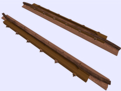 It is a track object: To make railway crossings (diamond junction or diamond crossing) at the same level. Length 2.4m, rail gauge 1067mm, with 6 bolts with union screws from the rail to the check rail (model B) every 40cm. Version or finish 2. For straight track and level with the ground. No spikes on the checkrails. Rail crossing designed for rail 30kg per meter, approximately 60.5 pounds per yard, suitable for medium rail. Rail 12 cm high.