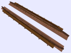It is a track object: To make railway crossings (diamond junction or diamond crossing) at the same level. Length 3.2m, rail gauge 914mm, with 8 bolts with union screws from the rail to the check rail (model B) every 40cm. Version or finish 2. For straight track and level with the ground. With spikes on the checkrails. Rail crossing designed for rail 30kg per meter, approximately 60.5 pounds per yard, suitable for medium rail. Rail 12 cm high. New version with the addition of the ''follow-gradient 1'' tag, to adapt to the inclinations of the railway track.