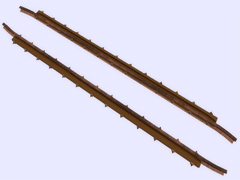 It is a track object: To make railway crossings (diamond junction or diamond crossing) at the same level. Length 5m, rail gauge 914mm, with 13 bolts with union screws from the rail to the check rail (model B) every 40cm. Version or finish 2. For straight track and level with the ground. No spikes on the checkrails. Rail crossing designed for rail 30kg per meter, approximately 60.5 pounds per yard, suitable for medium and light rails. New version with the addition of the ''follow-gradient 1'' tag, to adapt to the inclinations of the railway track.
