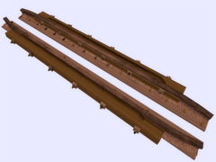 It is a track object: To make railway crossings (diamond junction or diamond crossing) at the same level. Length 2.4m, rail gauge 610mm, with 6 bolts with union screws from the rail to the check rail (model B) every 40cm. Version or finish 2. For straight track and level with the ground. With spikes on the checkrails. Rail crossing designed for rail 30kg per meter, approximately 60.5 pounds per yard, suitable for medium rail. Rail 12 cm high. New version with the addition of the ''follow-gradient 1'' tag, to adapt to the inclinations of the railway track.