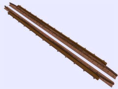It is a track object: To make railway crossings (diamond junction or diamond crossing) at the same level. Length 5m, rail gauge 610mm, with 13 bolts with union screws from the rail to the check rail (model B) every 40cm. Version or finish 2. For straight track and level with the ground. With spikes on the checkrails. Rail crossing designed for rail 30kg per meter, approximately 60.5 pounds per yard, suitable for medium rail. Rail 12 cm high. New version with the addition of the ''follow-gradient 1'' tag, to adapt to the inclinations of the railway track.