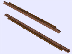 It is a track object: To make railway crossings (diamond junction or diamond crossing) at the same level. Length 5m, rail gauge 1435mm, with 13 bolts with union screws from the rail to the check rail (model B) every 40cm. Non-symmetric check rails at 45º. Version or finish 2. For straight track and level with the ground. Rail crossing designed for UIC rail 60kg per meter, approximately 121 pounds per yard, not suitable for light rail. Rail 16 cm high . New version with the addition of the ''follow-gradient 1'' tag, to adapt to the inclinations of the railway track.