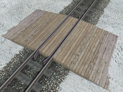 It is a track object. Level crossing made of wooden planks, for metric narrow gauge, 3.5m wide, for one lane of traffic. Version 1.