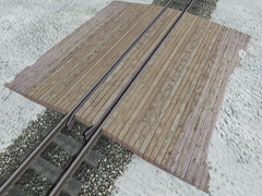 It is a track object. Level crossing made of wooden planks, for metric narrow gauge, 7m wide, for two lane of traffic. Version 1.