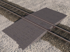 It is a track object. Level crossing made of new dark asphalt, with 6 additional metal strips for rails track protection, for metric narrow gauge track, 3.5m wide, for one traffic lane. Version A.