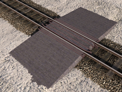 It is a track object. Level crossing made of new dark asphalt, with 6 additional rails for rails track protection, for metric narrow gauge track, 3.5m wide, for one traffic lane. Version B