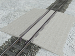 It is a track object. Level crossing made of new concrete, with 6 additional metal strips for rails track protection, for metric narrow gauge track, 7m wide, for one traffic lane. Version 1A.
