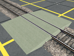 It is a track object. Level crossing made of light-colored asphalt, for 1668mm gauge track, 7m wide, for one traffic lane. Version C