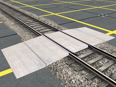 It is a track object. Level crossing made of scratched slabs concrete, for 1668mm gauge track, 3.5m wide, for one traffic lane. Version 2C