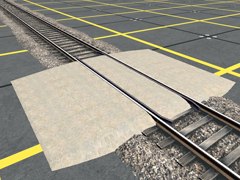 It is a track object. Level crossing made of earth, for 1668mm gauge, 7m wide, for two traffic lanes.